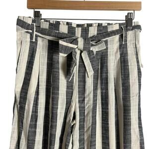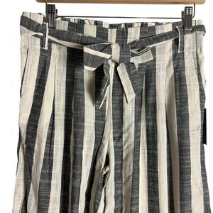 Indigo Rising Ivory Black Striped Wide Leg Belted Tie Waist Linen Pants Size M