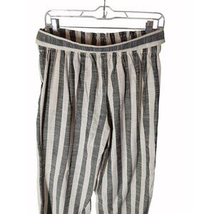 Lightweight and breathable, these striped pants feature an elastic waistband and tie belt for adjustable comfort.