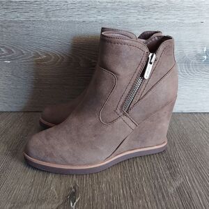 Indigo Rd Women's Naoko Wedge Ankle Boots Size 6.5 Brown Vegan Leather