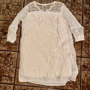 Indigo Rose Boho Flowy Shift Dress Size PXL Lined Lace 3/4 Sleeve At Knee EUC
