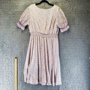 Indigo Rose Dress Women 2X Pink Floral Smocked Short Sleeve Rayon Midi