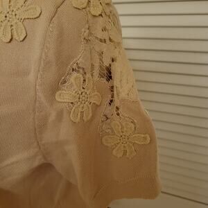 Indigo Rose Floral Lace Trim Pullover Short Sleeve Sweater Beige Womens Size L