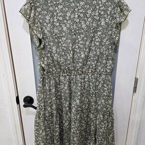 Indigo Rose Green Floral Print V-Neck Dress Midi Ruffle Cap Sleeve Elastic Waist