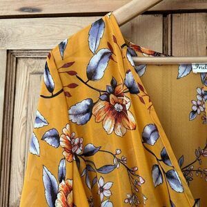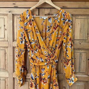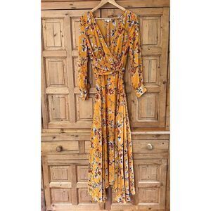 Indigo Rose Medium Maxi Dress Yellow Floral V-Neck Belted Cottage Core Flowy