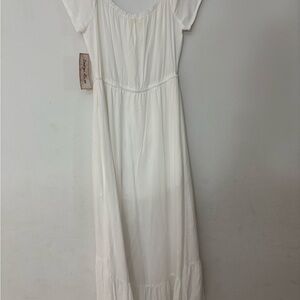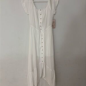Indigo Rose White Peasant Dress with Gold Buttons