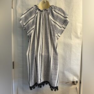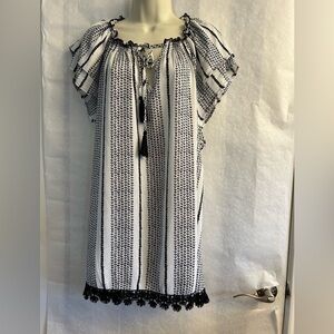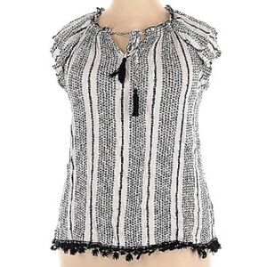 Indigo Rose white & black striped flowy blouse w/black tassels Sz-2X B7