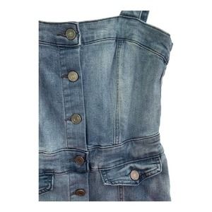 Indigo Run Womens Denim Button Front Dress Sz S. The perfect denim dress, buttons all the way up and down in the front so you can open as many buttons as you like, two front faux pockets, straps are adjustable, belt style around the waist area which makes dress more flattering.