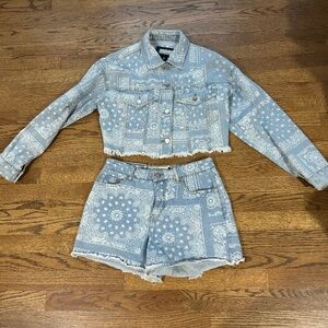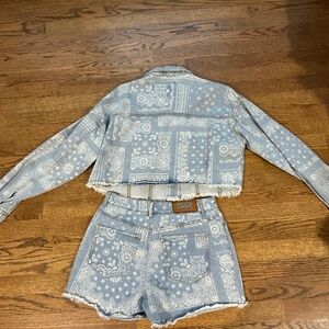 Indigo Saints Denim Light Wash Distressed Shorts and Jacket Set Raw Hem