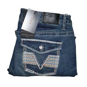 Indigo Skins Men's Dark Wash Jeans Thick Stitch Actual Size 36x31 Tag 34x32 NWT