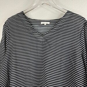 Indigo Soul Black & White Pinstripe Nautical Boat Swim Suit Cover Up Size 2XL. Asymmetrical. Sheer. Fun sail boat pattern at the bottom. 3/4 sleeves.
