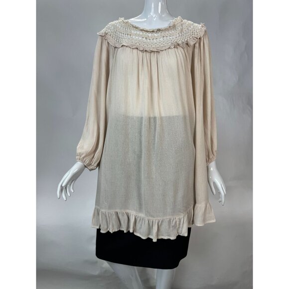 Indigo Soul Natural Rayon & Cotton Tunic With Crochet Yoke & Ruffle Hem X-Large