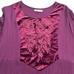 Indigo Soul Purple Bell Sleeve Top Boho Velvet Detail Size 2XL Whimsigoth