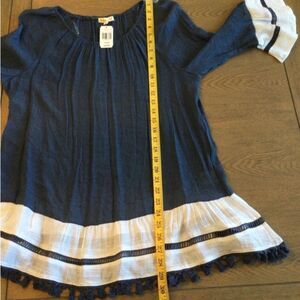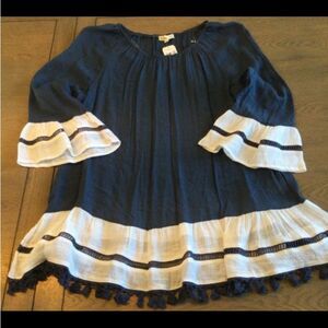 Indigo Soul Women’s 3/4 Sleeve Tunic Blouse. Size Large. Colors Navy Blue and White. New With Tag. Please reference attached pictures for style, condition, colors, accents and approximate sizing.