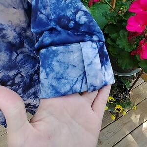 Indigo Soul Tunic Tassles Fringe Blue/White Large Blouse Top