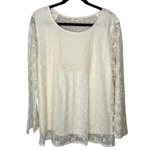 Indigo Soul Women’s L Lace Overlay Bell Sleeve Blouse
