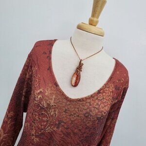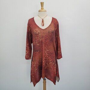 Indigo Soul Womens Paisley Tunic Top Size L Gold Rust V-Neck Asymmetric Hem