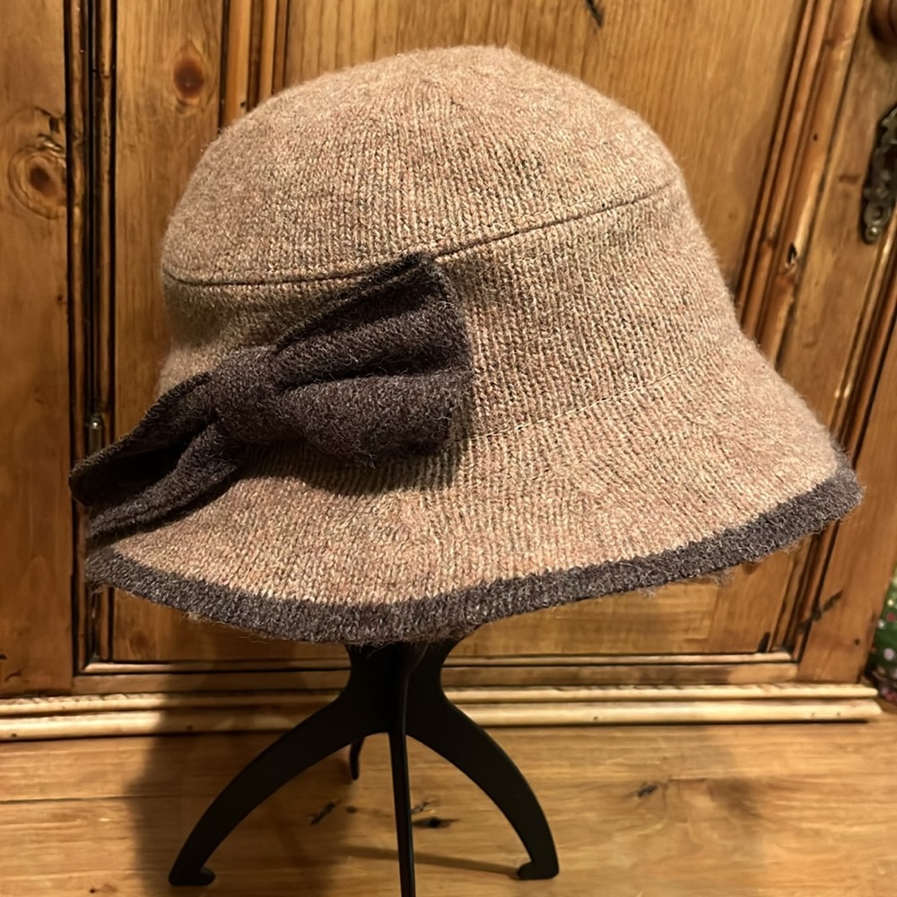 In like new Condition Mocha colored wool/ nylon bucket style hat with side bow embellishment