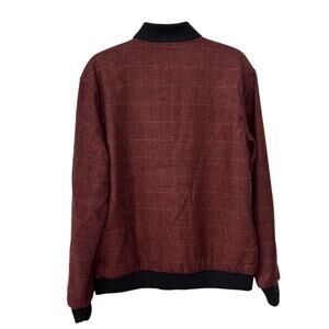 Keywords: Indigo Star, bomber jacket, men's jacket, red jacket, windowpane pattern, casual jacket, travel jacket, fall jacket, spring jacket, winter jacket, zip closure, ribbed collar, machine washable, medium size, MILJ-618
