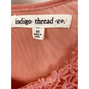 Beautiful Flowy Indigo Thread Size 3X Coral Orange Chiffon Embroidered Popover Top Boho with Round Buttons in the back. Sleeves are semi sheer. Top is layered with a matching lining. Pit to pit: 30”, Length shoulder to hem: 30”. Thanks for looking!
