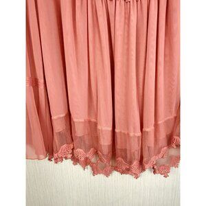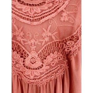 Indigo Thread 3X Coral Orange Chiffon Embroidered Popover Top Boho Back Buttons