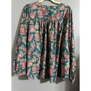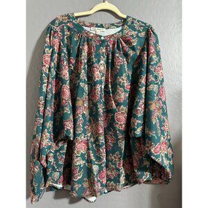 Indigo Thread CO. Women's Floral Button Down wide Sleeve Top Size XL NWOT