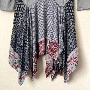 Indigo Thread Co. Boho Patchwork Mixed Print Handkerchief Hem Tunic Top