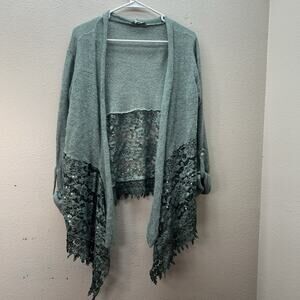 Indigo Thread Co. Forest Fairy Duster Cardigan Boho Lace Y2K Knit Whimsigoth waterfall asymmetrical embroidered sequin long sleeve sweater open front festival ren fair witchy