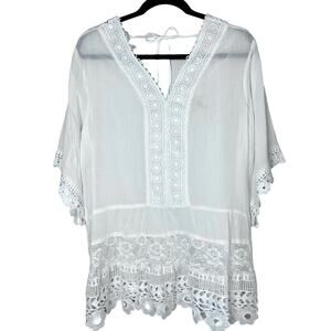 Indigo Thread Co. Mixed Media Angel Sleeve V-Neck Tunic Swim Cover-Up Sz L