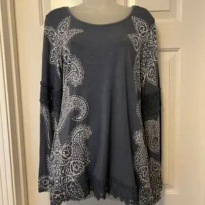 Fun patterned top, comfy, and perfect to throw on for a casual gathering!