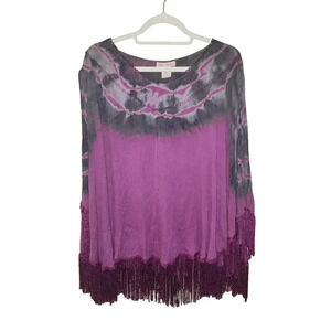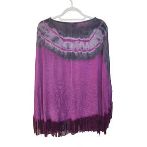 Indigo Thread Women's Tie-Dye Embroidered & Fringe Trimmed Poncho L