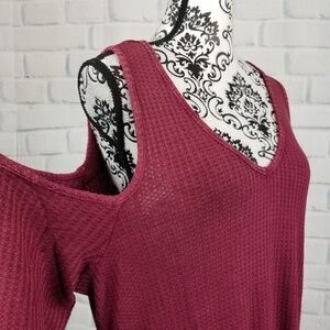 Indigo Thread women's long sleeve cold shoulder plus size 1x waffle knit top b26