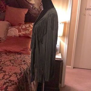 Cute little jacket . Feels like stretchy tee shirt material. Would look great over a tank with some shorts or western it up with some jeans and boots.