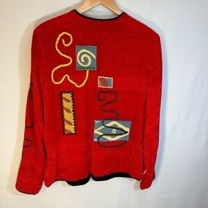 Indigo Vintage Front Button Long Sleeve Blazer Jacket Patchwork Wearable Art S