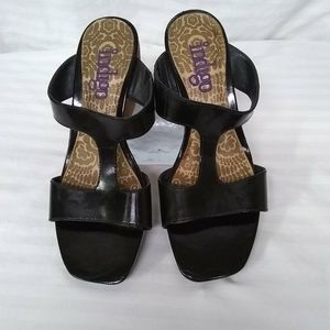 Indigo Womens Sandals 3" Wedge Cork Heels Black Leather Band Slide On Size 7M