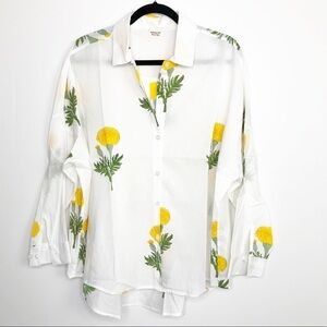 Indigo by Boutin cotton floral oversize button-down shirt, 100% cotton