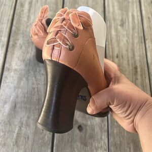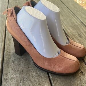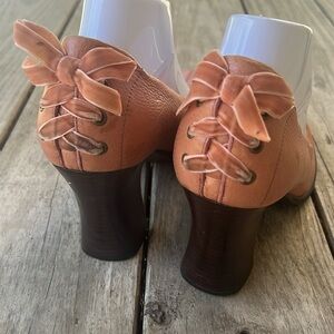 Indigo by Clarks Bow Heel Pumps Size 10 Peach Leather Retro Mod Style