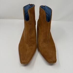 Indigo by Clarks Suede Ankle Booties Brown Perforated Mid Heel Women’s 8.5 NWB