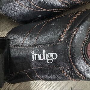 Indigo by Clarks Western Boot Style Slip on Heels Black Leather Sz 8M Pointed