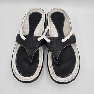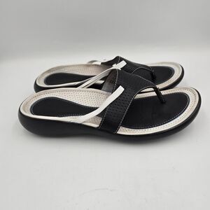 Indigo by Clarks Women's 8M Black White Perforated Leather Thong Sandals Slip On