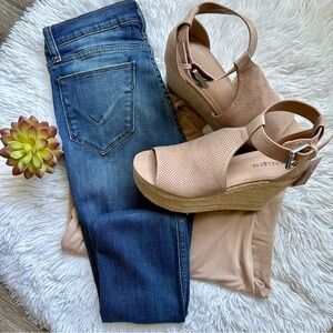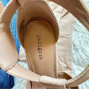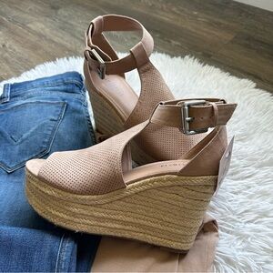 Indigo rd. Uptown girl Tan suede perforated espadrille wedges size 7.5