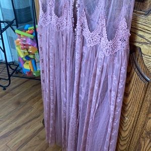 Gorgeous dusty mauve duster. The skirt has strips of lace over sheer underskirt. Beautiful. Only worn once