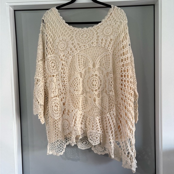 Cream colored, indigo thread knitted top with a tank top underneath new without tags size 3 XL
