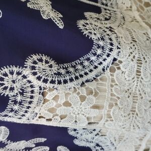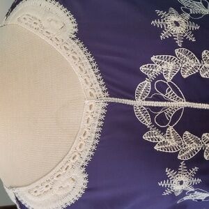 Indigo threads Co enbroidery blouse, navy blue with cream enbroidery. Size XL.