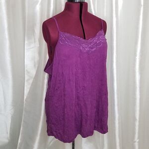 Beautiful fuscia color, v-neckline, spagetti adjustable straps, lace trim, relaxed fit, Great condition