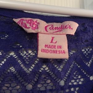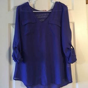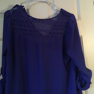 This is a really pretty top that has been sitting in my closet that someone else deserves more than I do! It is form fitting and runs a little small, but is in good condition. It is a transparent material, so it's best with a tank top underneath!