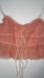 Romantic and flirty, this peach-toned Indikah crop top is perfect for summer days and festival vibes. Features ruffled trim, a ruched texture, and delicate adjustable straps with a front tie detail for a flattering fit.