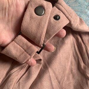 Very pretty blush color. This is 100% polyester but feels just like a super soft suede