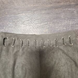 Indikah faux suede mini skirt. Decorative detail ar waistline. Center back zipper. Size is labeled an 8, but appears to run small and is listed as a 4. See measurements below. Great condition.