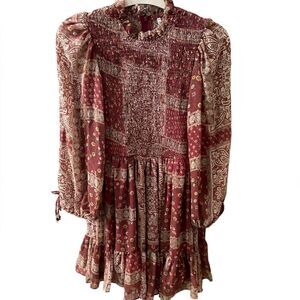 Indikah by Angel Biba LONG BALLOON SLEEVE SHIRRED DRESS PAISLEY PRINT - XS
