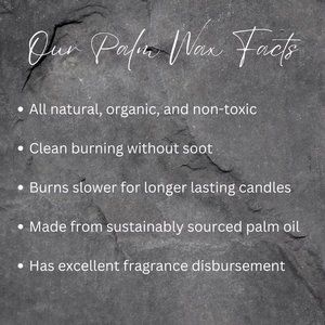 Made with unscented, natural palm wax and cotton wick.